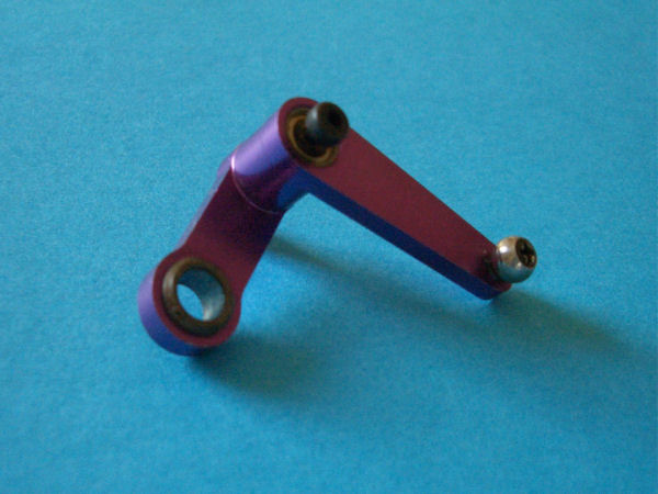 Gebrauchte Heckrotor-Pitchbruecke mit Alu-Lagerhuelse und schraubbarer Anlenkkugel.