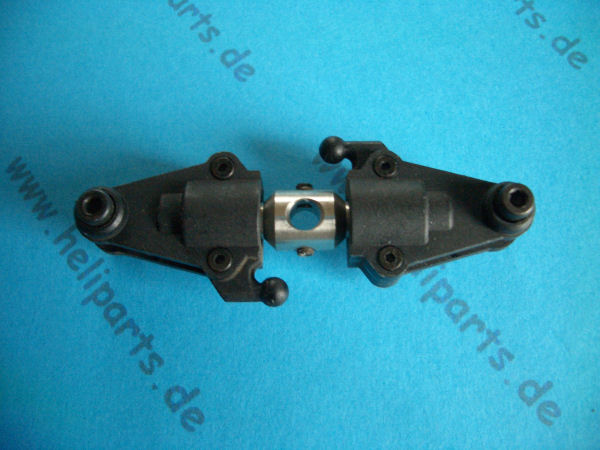 Gebrauchter Heckrotor bestehend aus zwei Blatthaltern mit je zwei Kugellagern, sowie Heckrotornabe und Blatthalteschrauben.