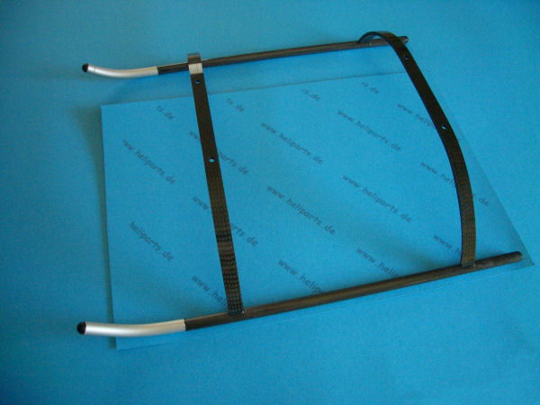 Kohlefaser Landegestell Gewicht nur 51gr. bestehend aus 2 CFK-Küfenbügeln und 2 CFK-Kufenrohren mit Aluendstuecken. Standbreite 25 cm, Höhe 6 cm, Sehr guter Zustand . Passend fuer JR Ergo 50 und 30, sowie andere 50er Helis. |